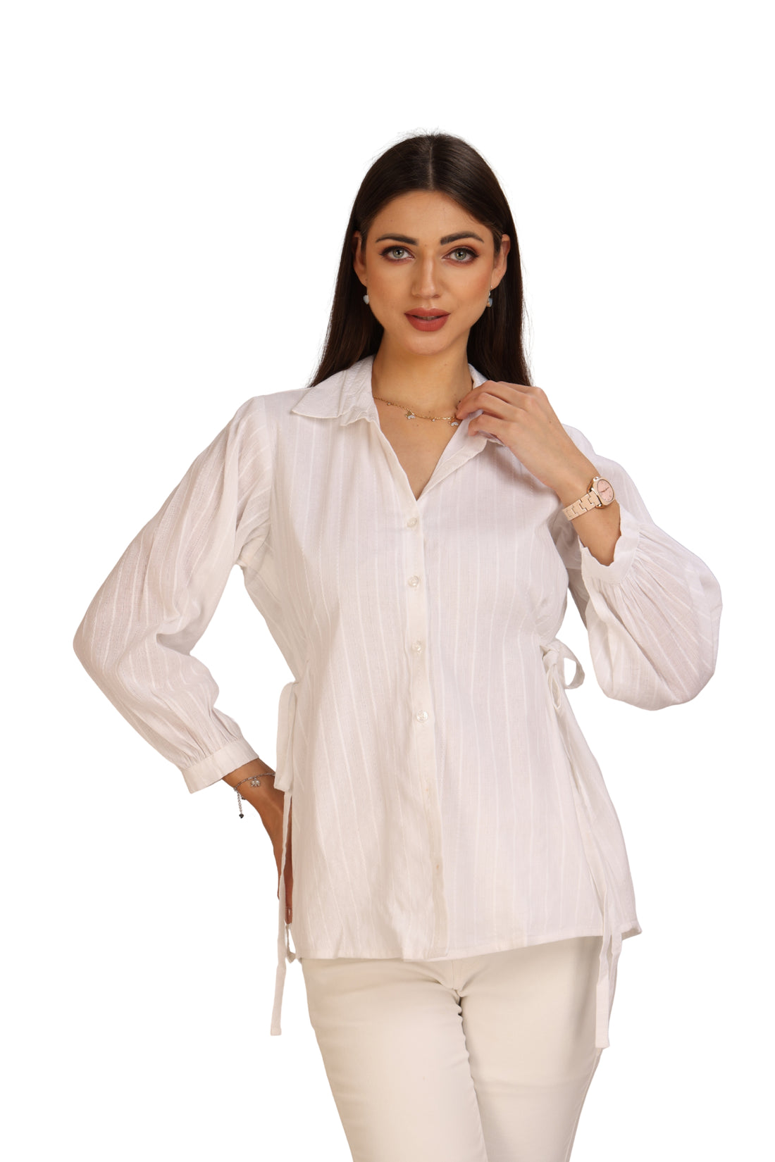 Self-Striped Cotton Tie-Side Shirt