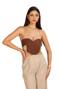 A sculpted corset top that blends texture with shape. The jacquard cotton gives it a rich feel, while the curved front and clean cut-outs add a bold, modern edge. Light straps keep the neckline open and flattering. It?s a statement piece that stands out without trying too hard.