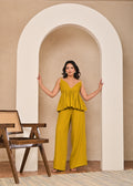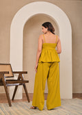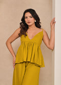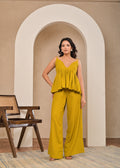 A light and effortless co-ord set that blends ease with elegance. The tiered camisole top features delicate straps and a flattering V-neckline, while the wide-leg pants add structure and movement. A perfect balance of comfort and quiet statement.